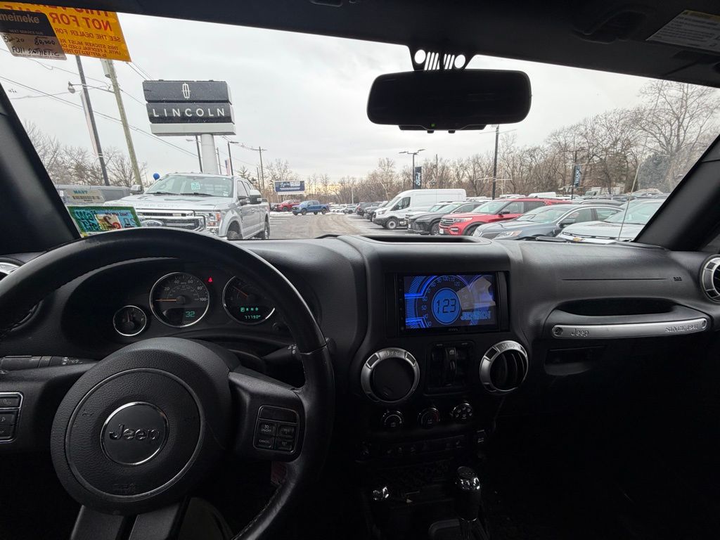 The interior of this Wrangler is equally impressive, with comfortable cloth seats, a leather-wrapped steering wheel, and a vehicle information center to keep you informed on the go. Stay connected with the 8-speaker audio system, complete with SiriusXM radio and an auxiliary input. Safety features like airbags, traction control, and electronic stability control ensure a secure driving experience.